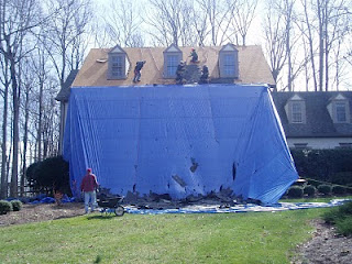 Have you ever wondered just how we manage debris during a tear-off? How can we prevent the old shingles from damaging delicate plants and shrubs below?